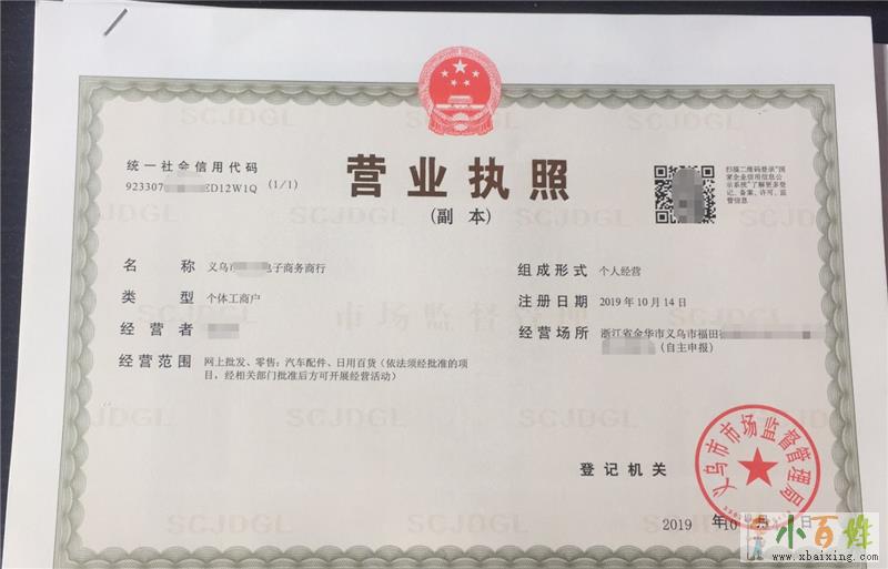 2个体户名称,格式(义乌市**电子商务商行)一般是工商随机的